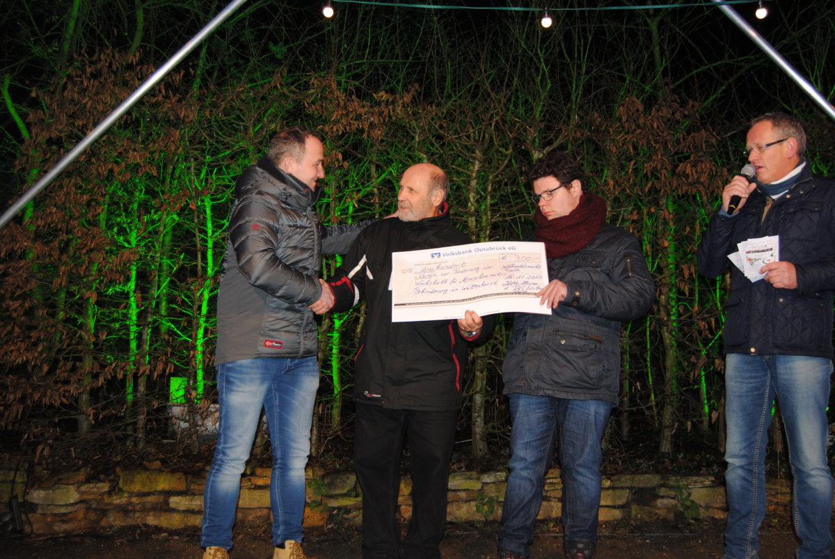 Da ist zum einen das Ruller Haus, der Gastgeber des Ruller Weihnachtsmarktes. Seit 5 Jahren stellt dieser Verein seine Räumlichkeiten und den Innenhof dem TuS zur Verfügung. Die Spende ist auch ein Dankeschön für eine unkomplizierte Partnerschaft. Das Ruller Haus benötigt langfristig Gelder um ihre Projekte und Veranstaltungen in gewohnter Form weiter anzubieten. Eine 3jährige Förderung des Landes läuft im Sommer aus und seitens der Gemeinde wird es keine Unterstützung geben. Insgesamt 20.000,-€ werden benötigt. Durch den Verkauf von Puzzelteilen versucht der Verein diese Summe zusammen zu bekommen. Ein Teil des Puzzels haben jetzt die Alten Herren des TuS Eintracht Rulle für 400,- Euro erworben. Die Übergabe erfolgte an den 1. Vorsitzenden des Ruller Hauses Arno Weerd.