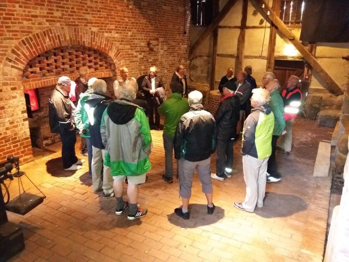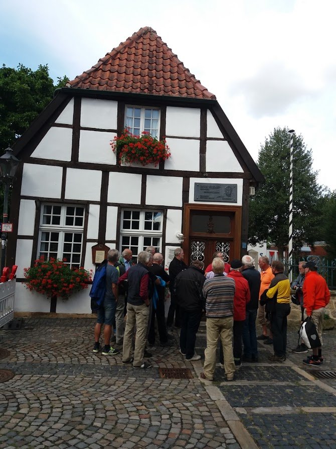 Bad Essen als Ziel war auserkoren. Nachdem die Zimmer belegt waren, ging es gut beschirmt weiter. Es wartete Frau Middendorf auf uns ,die sich alle Mühe gab um die Gruppe in die Historie der Gemeinde einzuweihen.