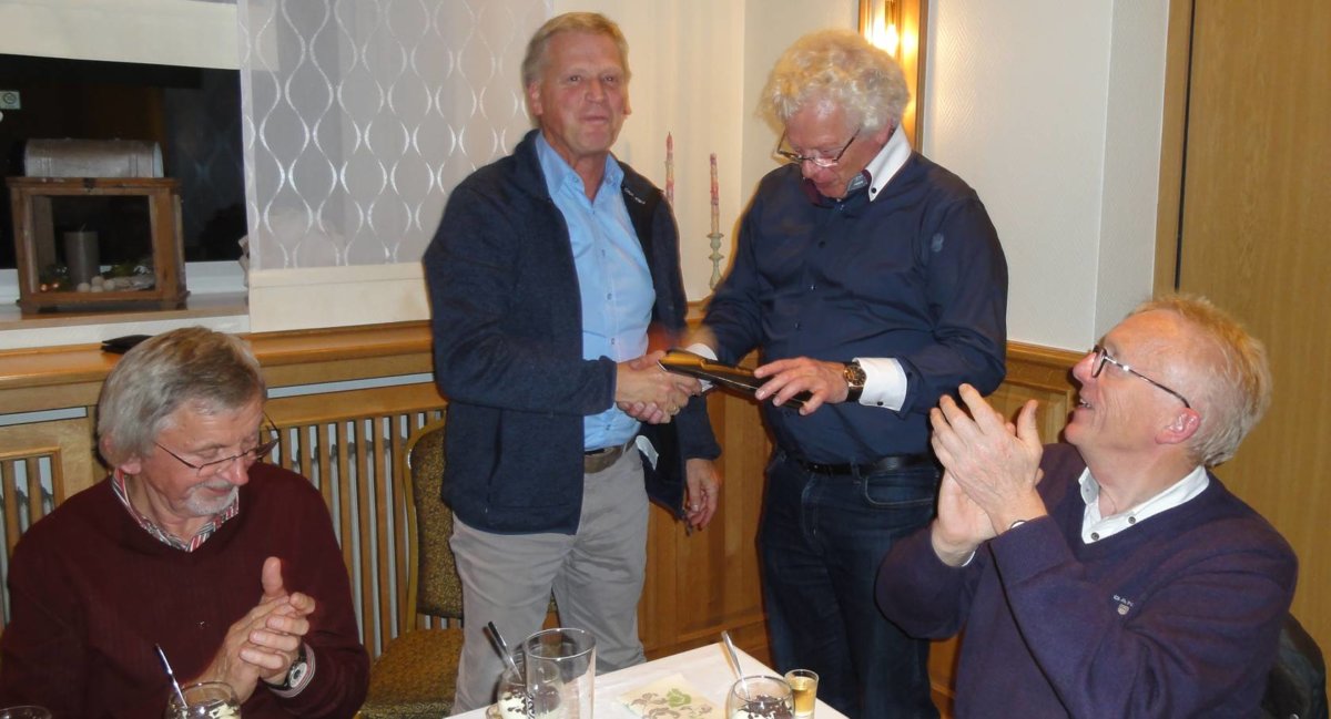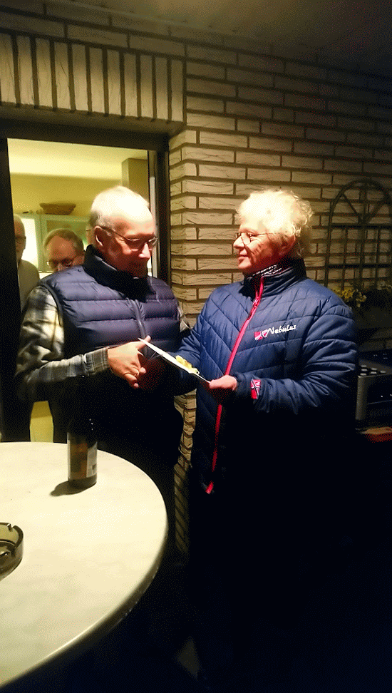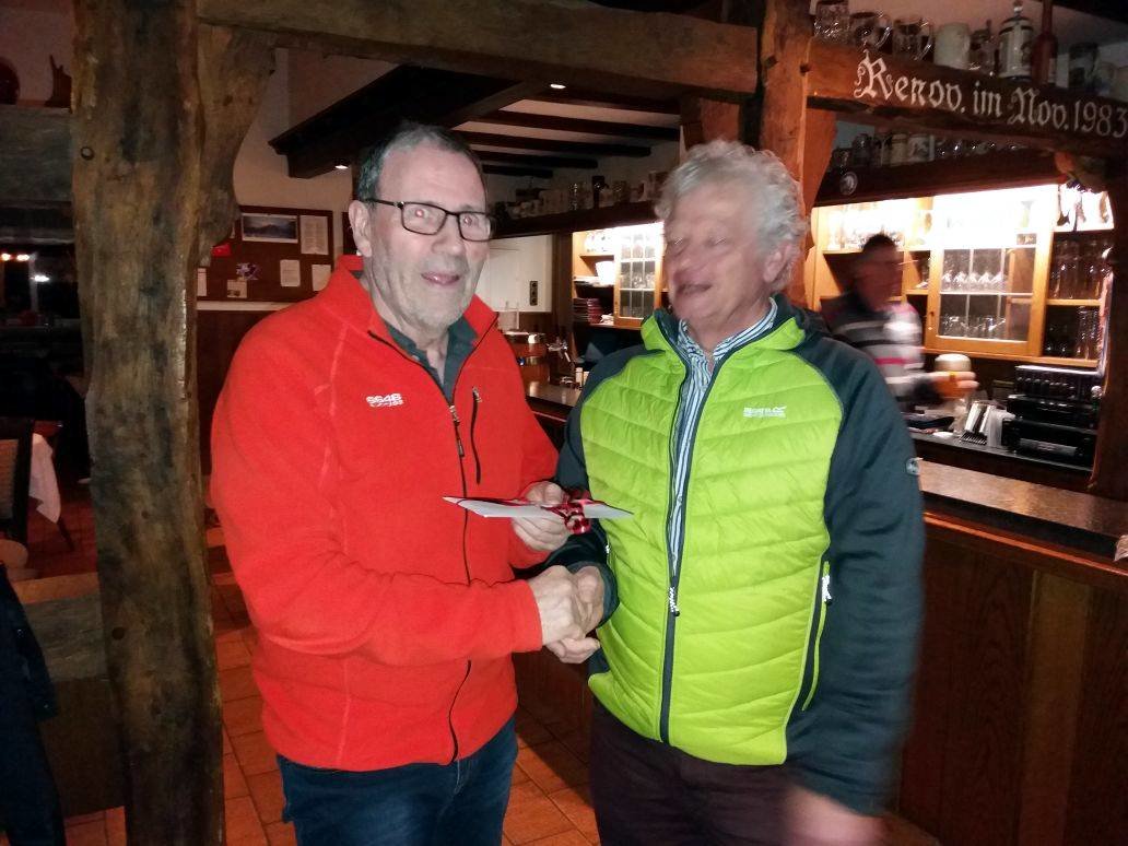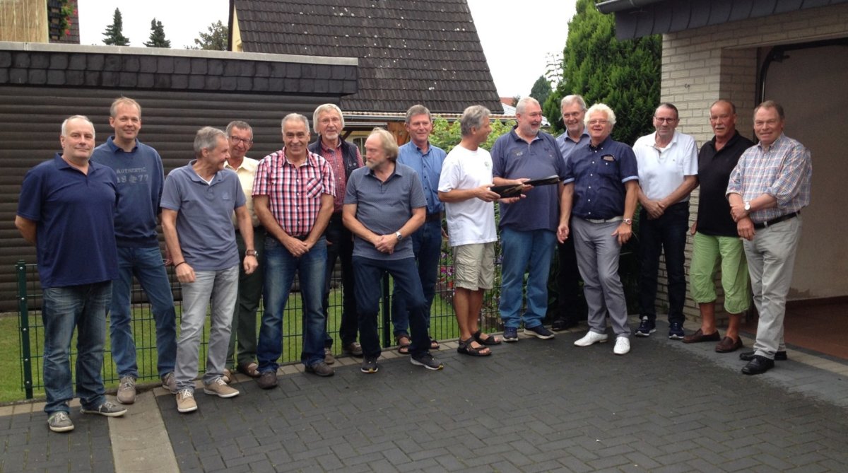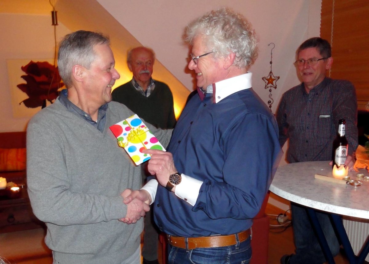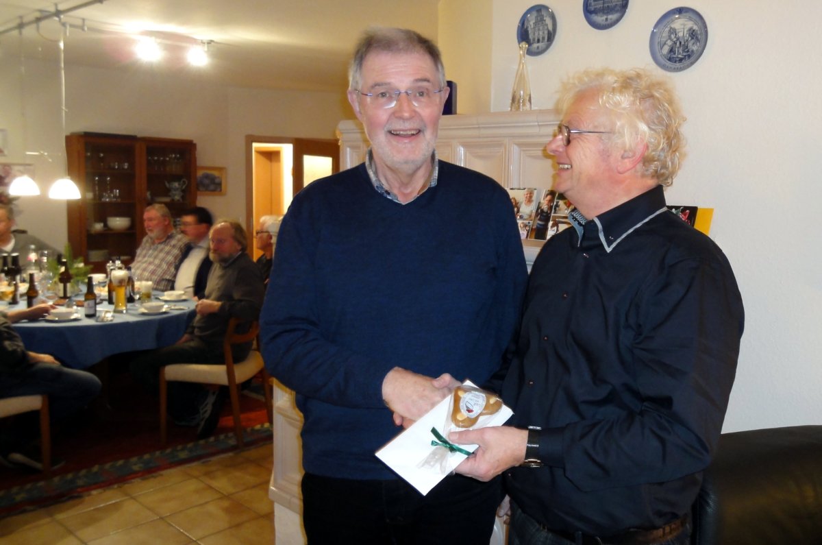 Anschließend gratulierte Bruno Haarmann Hubert Teepker im Namen der ganzen Gruppe, wünschte ihn alles Gute und überreichte ein kleines Präsent.