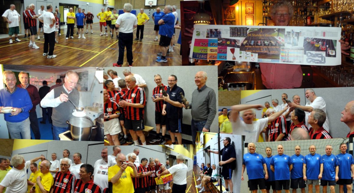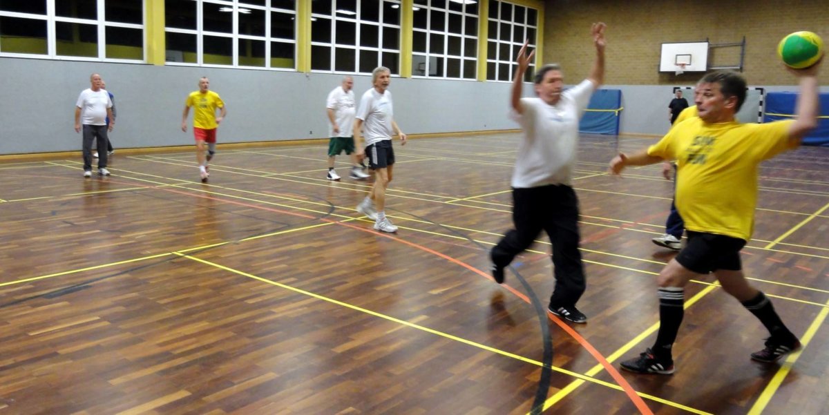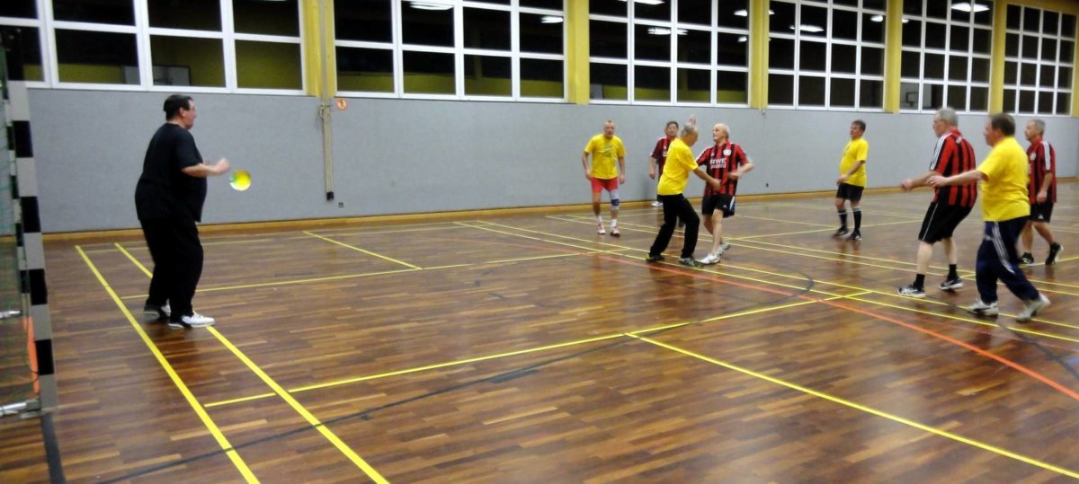Nach dem Motto „Je oller desto doller“ bietet diese Gruppe einmal in der Woche eine Kombination aus Gymnastik und Spiele. Jeder Trainingsabend beginnt mit 30 Minuten Gymnastik. Danach wird im monatlichen Wechsel Handball, Basketball, Badminton oder Volleyball gespielt. Jeden 5. Mittwoch im Monat ist Fußball angesagt. Das Wort Turnen übersetzen wir mit Touren, die mindesten einmal im Jahr stattfinden. Zielgruppe sind Männer ab 50.
