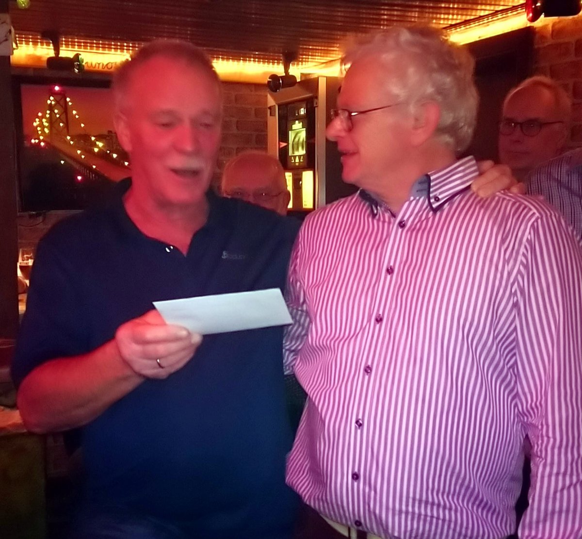 Langsam aber unaufhaltsam wächst die Zahl der siebzigjährigen bei GTS. Jetzt konnten wir Heiner Müssen gratulieren, der anlässlich seines Geburtstages zu Gulaschsuppe und Kaltgetränken ins Stammlokal Nieporte eingeladen hatte. Bruno Haarmann überreichte im Namen aller ein kleines Präsent und wünschte Heiner für die Zukunft alles Gute, damit er noch lange bei unserer Sportgruppe aktiv sein kann.