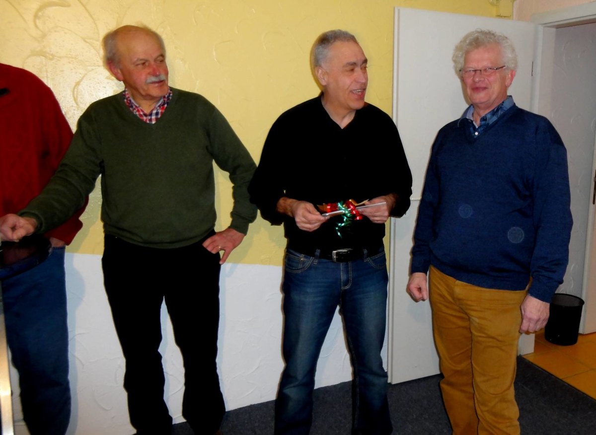 Ulli Baller bedankte sich im Namen aller GTS´ler mit einem kleinen Präsent bei Bruno Haarmann und Hans Meyering für die geleistete Arbeit an den Sportabenden.