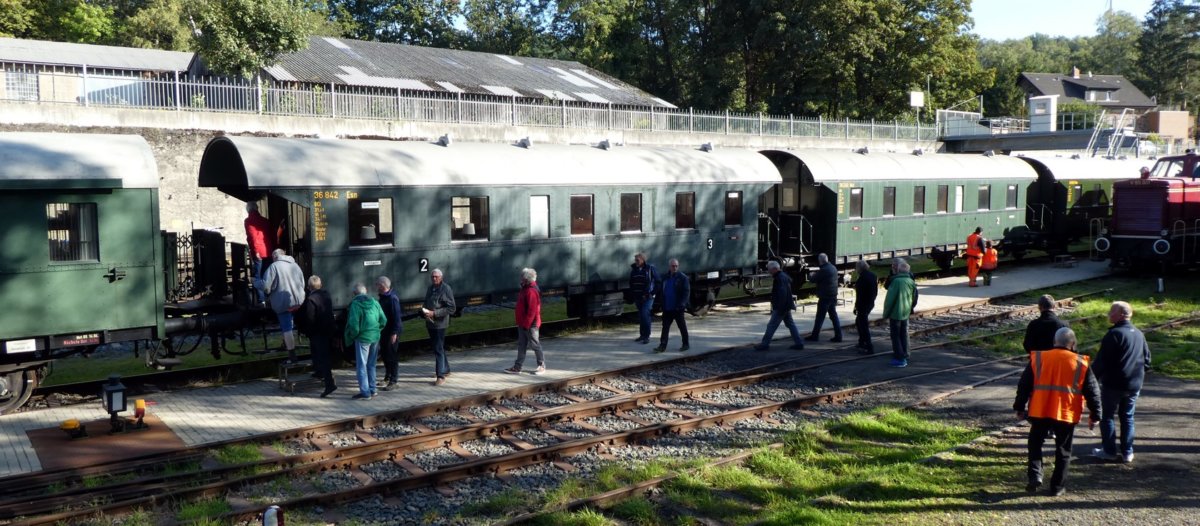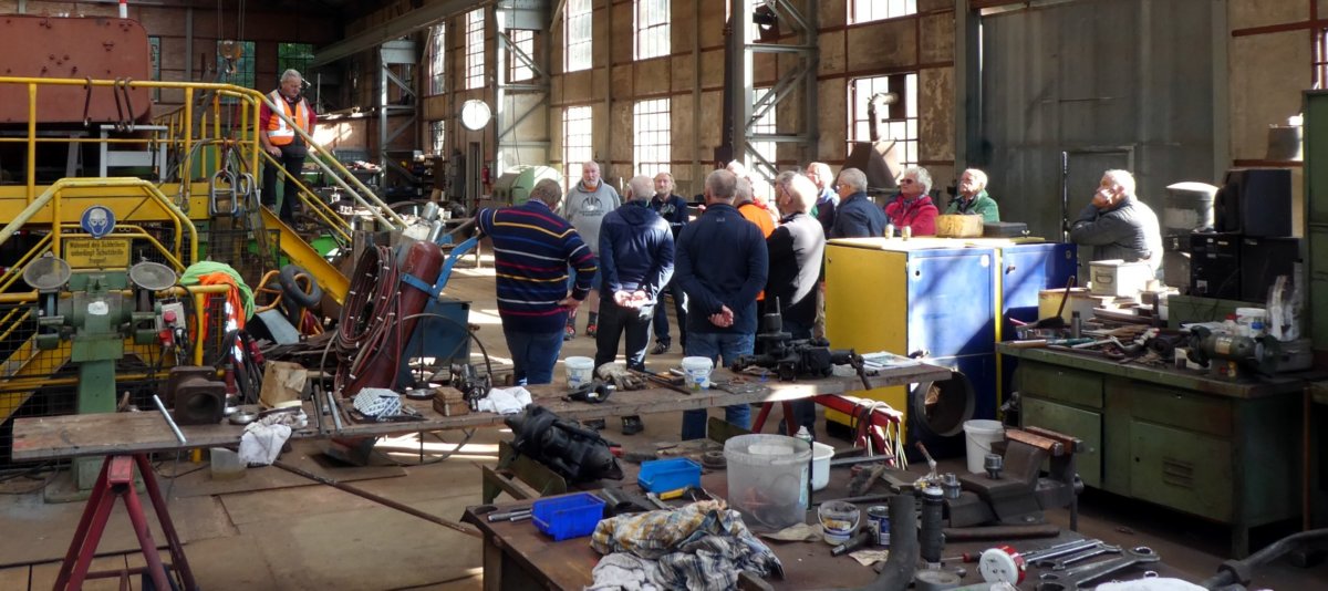 Höhepunkt war die Besichtigung der Werkstatt im alten Brechwerk und der alten Schinkel-Dampflok, die kurz vor ihrer Fertigstellung (in 2 Jahren) war. Hier wurde es einigen GTS’lern doch sehr heiß, aber nicht vom Wetter sondern wegen der unendlichen Arbeit, die in so eine Restaurierung gesteckt werden muss. Hier merkte man den Dampflokfreunden an, dass sie mit jeder Faser ihres Körpers Eisenbahner sind und dafür leben.