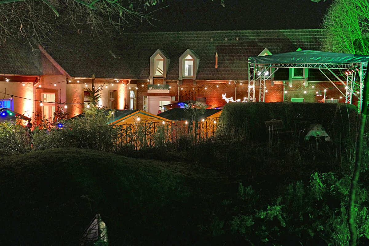 Vor dem 4. Advent verwandelte sich das „Ruller Haus“ wieder in eine weihnachtliche Oase. Die Räume im Inneren wurden für den Basar und die Cafeteria hergerichtet. Im Innenhof wurden Weihnachtsbäume dekoriert, Buden geschmückt und Lichteffekte installiert. An zwei Tagen konnten die Gäste dann dieses herrliche Ambiente erleben.
